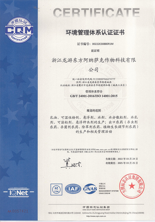 環(huán)境管理體系認(rèn)證證書